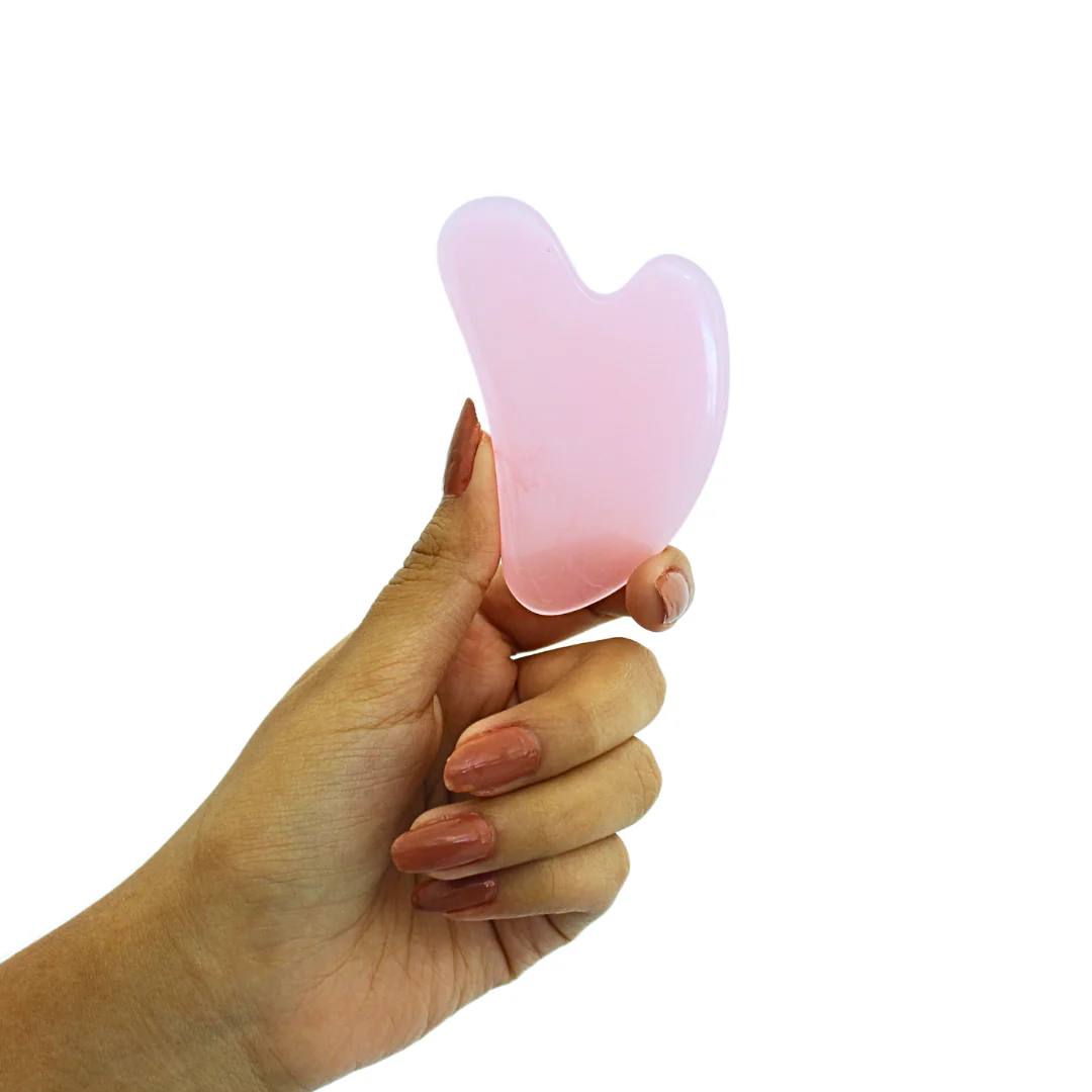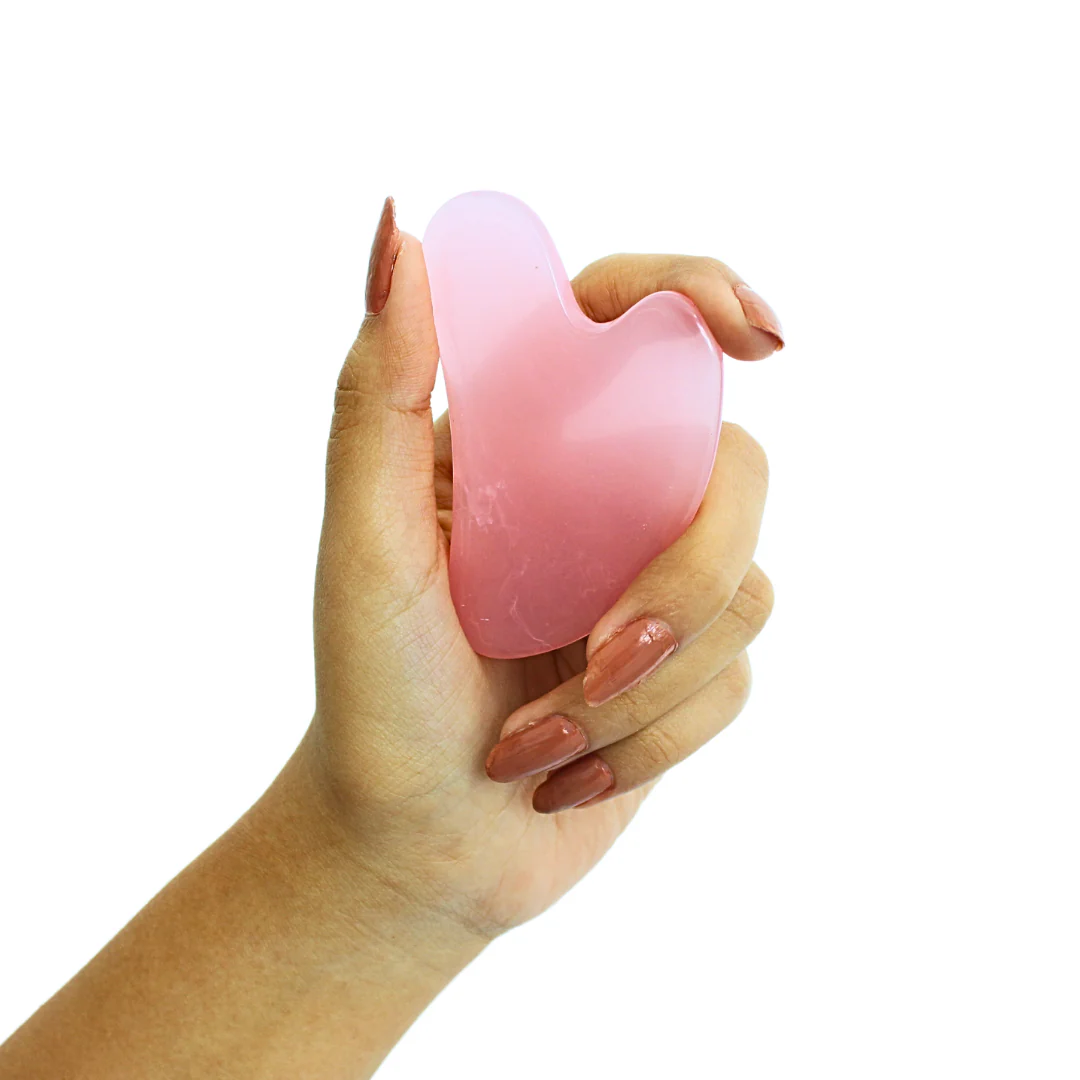 La Gua Sha Pink es ideal para realizar esta técnica en casa, es de resina porque queremos acercarte una herramienta resistente que viaje contigo sin temor a que se rompa (las de cuarzo son hermosas pero no soportan caídas).